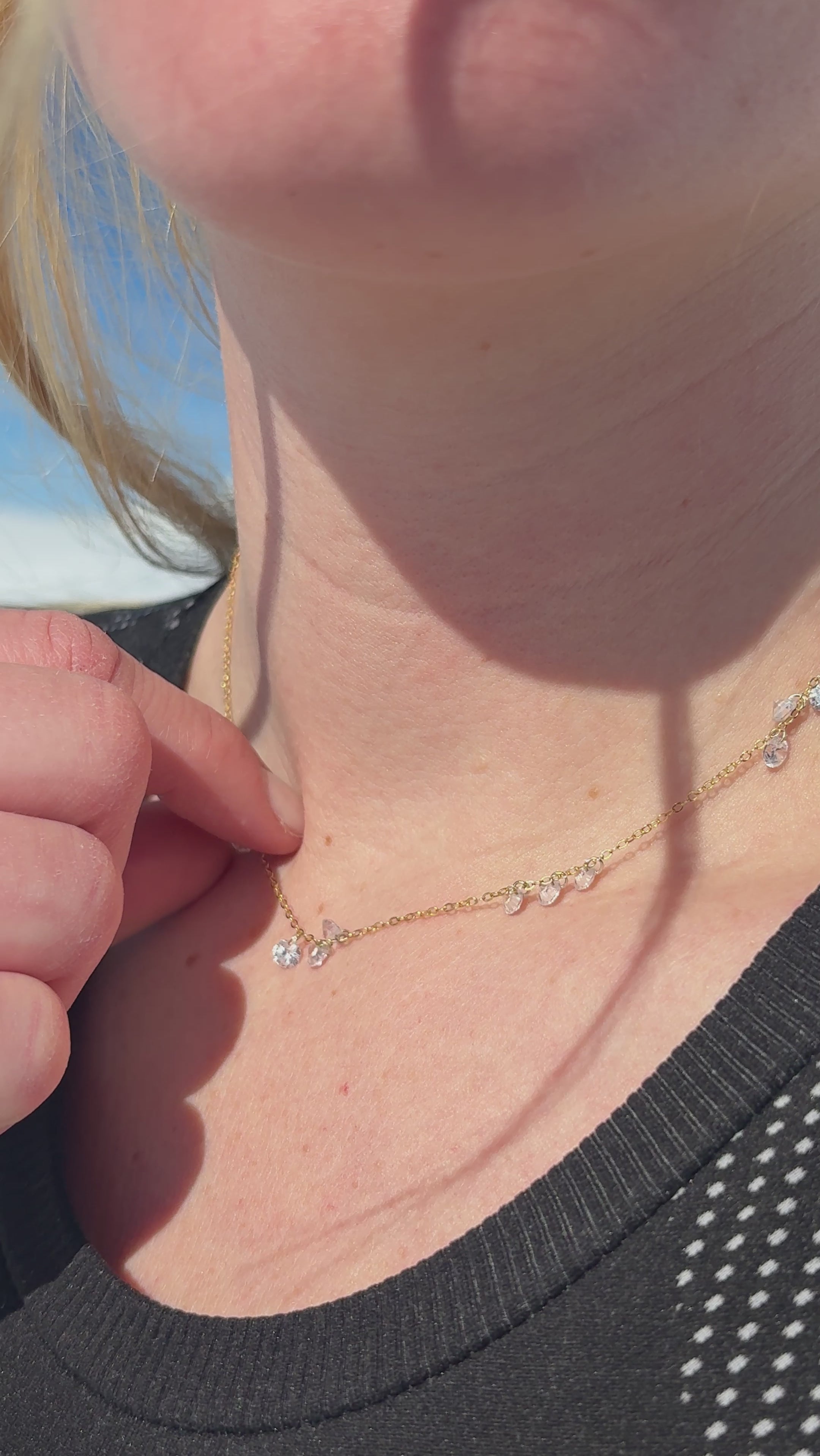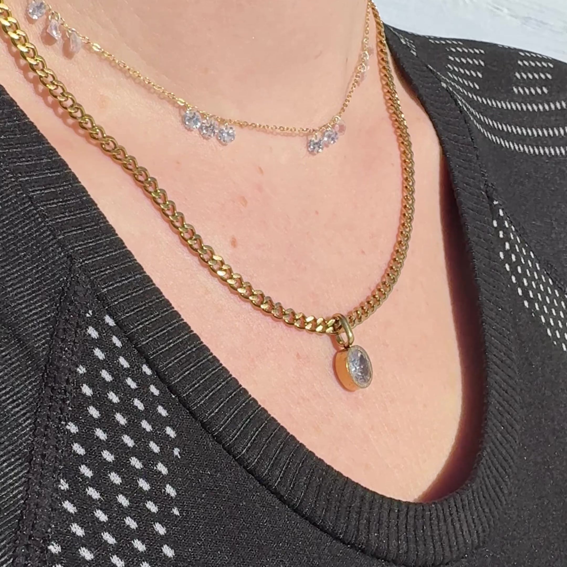 Wie kleine Lichtblicke auf deiner Haut. Unsere Luce Sparkle Kette aus hochwertigem, vergoldetem Sterling Silber trägt sanft schimmernde Anhänger, die bei jeder Bewegung das Licht einfangen. Ein Hauch von Luxus für jeden Tag, der deine natürliche Ausstrahlung unterstreicht.