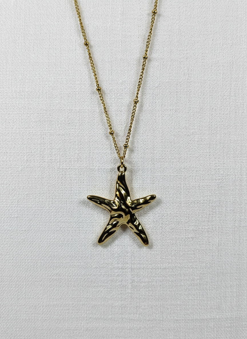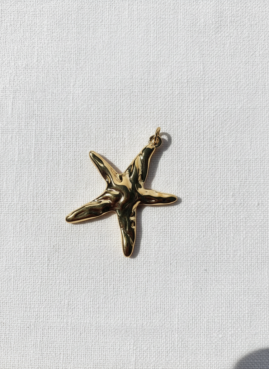 Eleganter Seestern-Anhänger in spiegelnd poliertem Gold. Bringt die Schönheit der italienischen Riviera an deine Kette – ein Symbol für Träume und maritime Abenteuer.