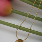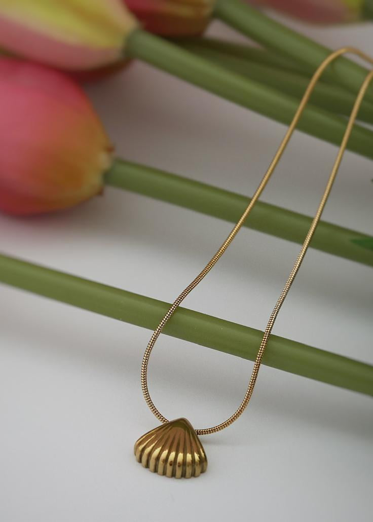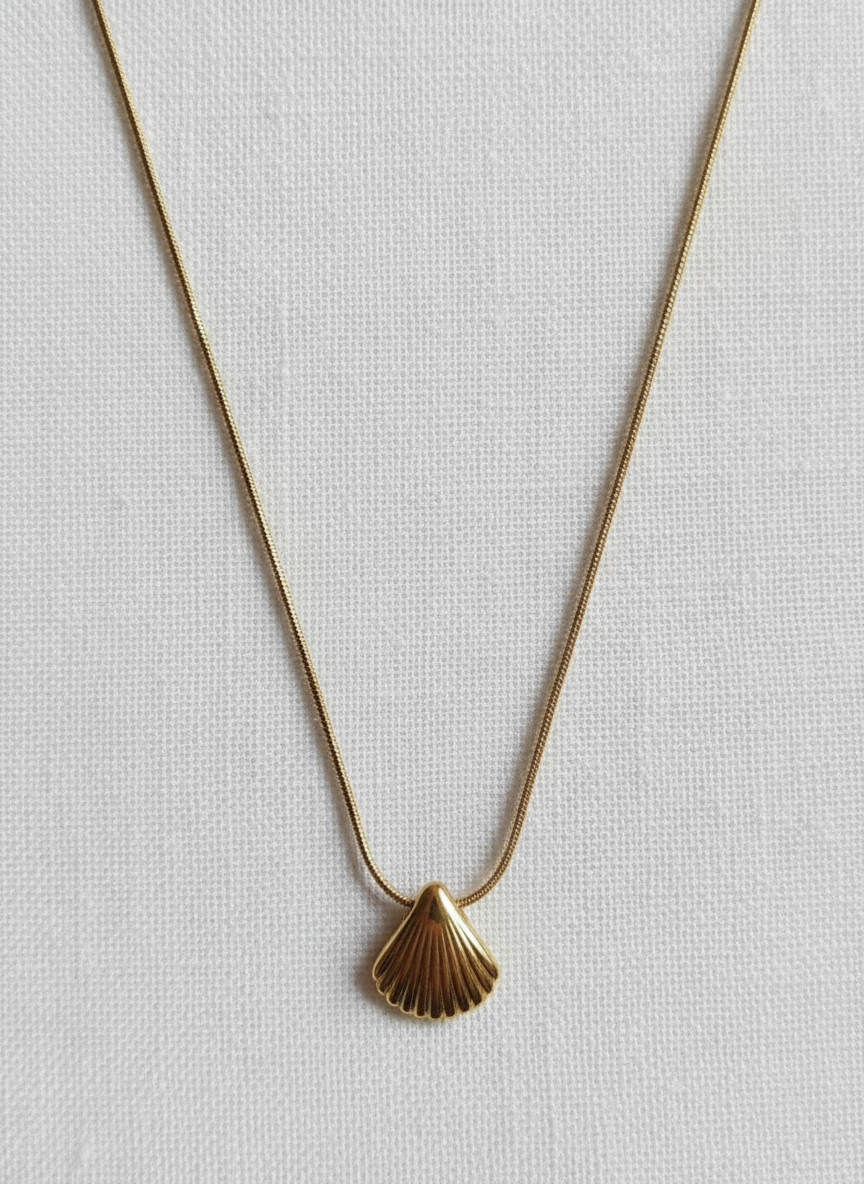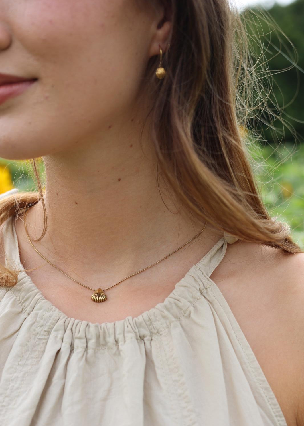 Zarte Goldkette mit strukturiertem Muschelanhänger. Maritime Romantik im italienischen Stil.