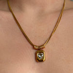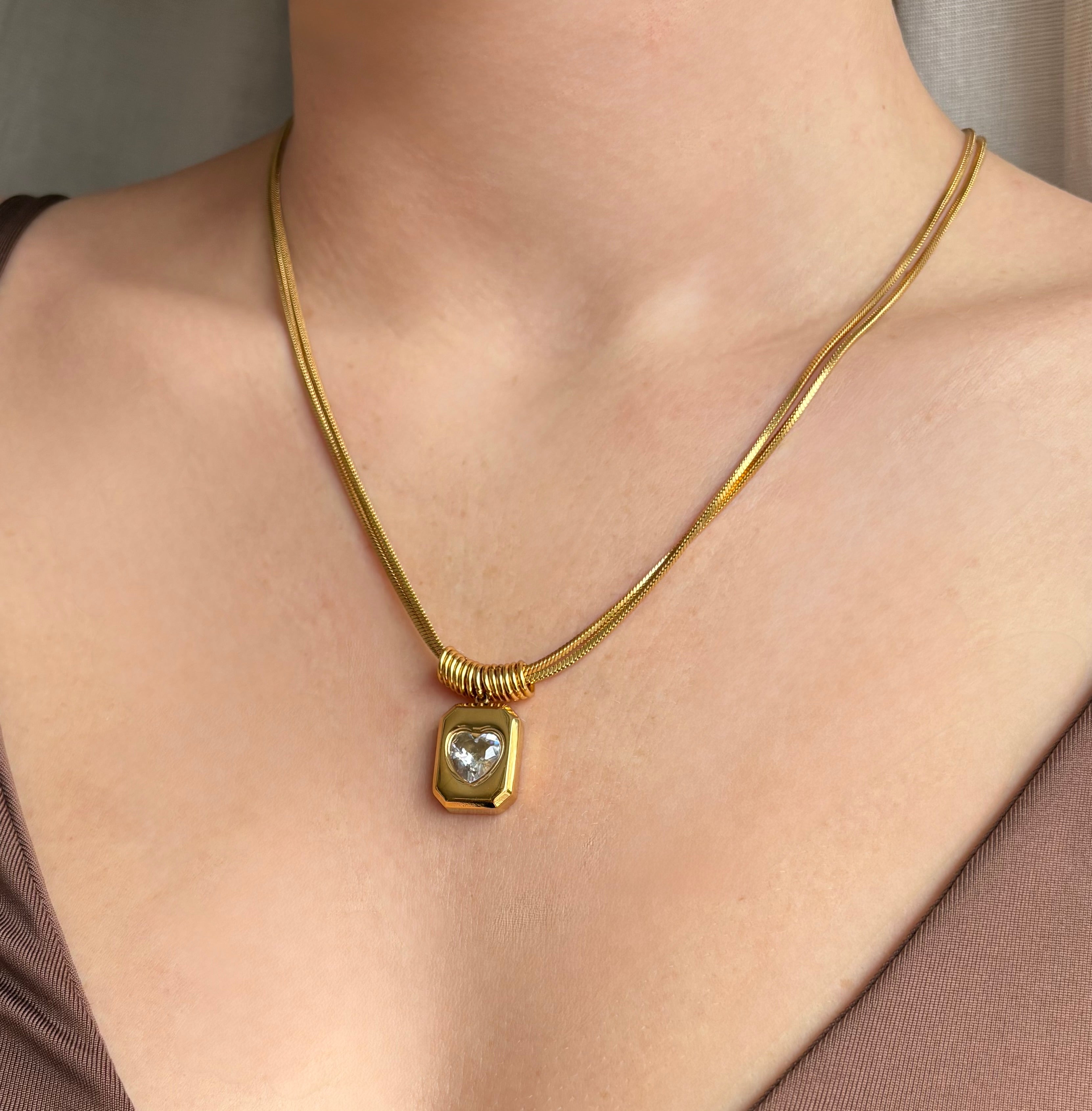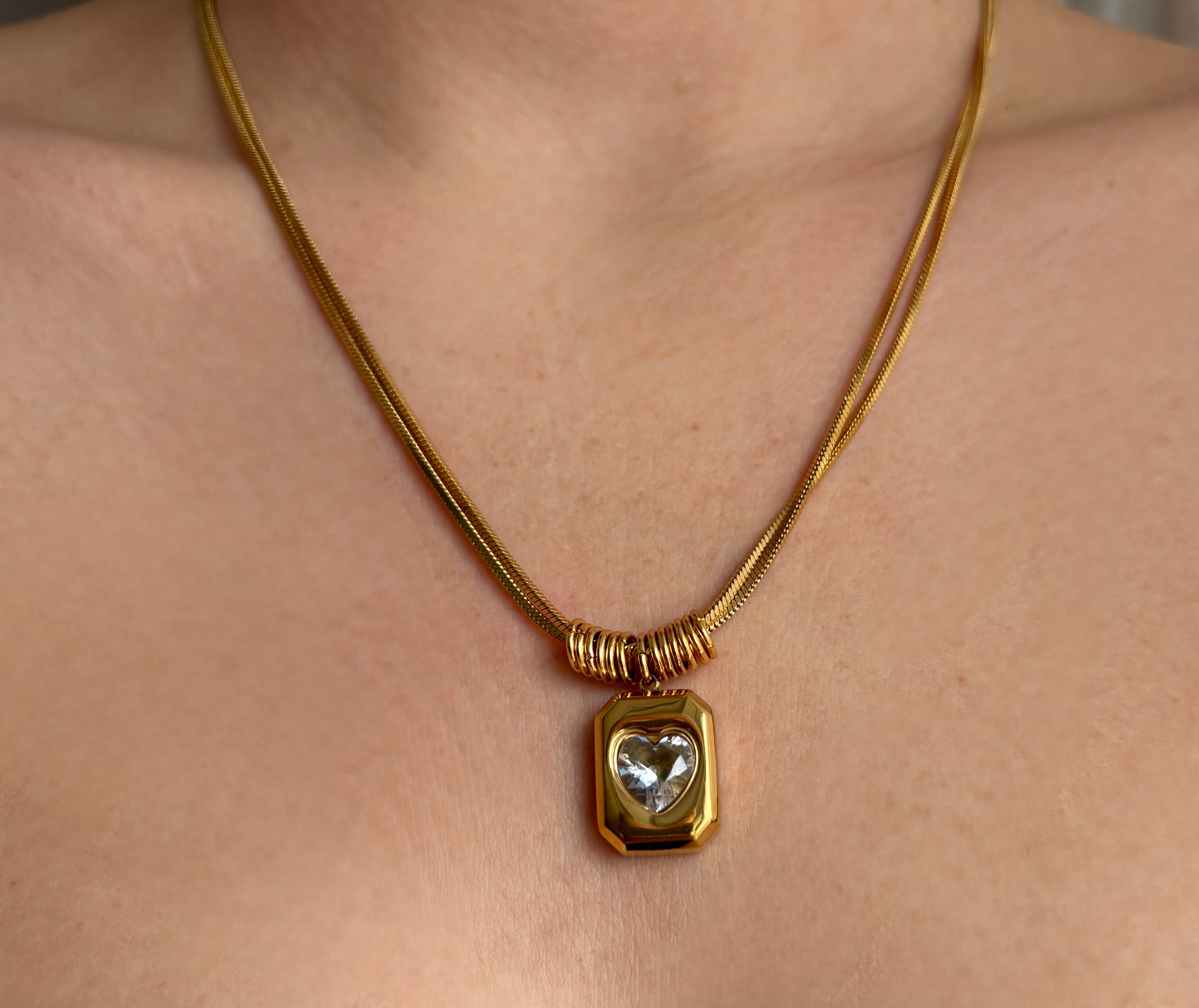 Diese Halskette im italienischen Stil vereint die Stärke eines Barrens mit der Zärtlichkeit eines Herzens. Ein Statement-Piece für die Frau, die Eleganz und Tiefe schätzt.
