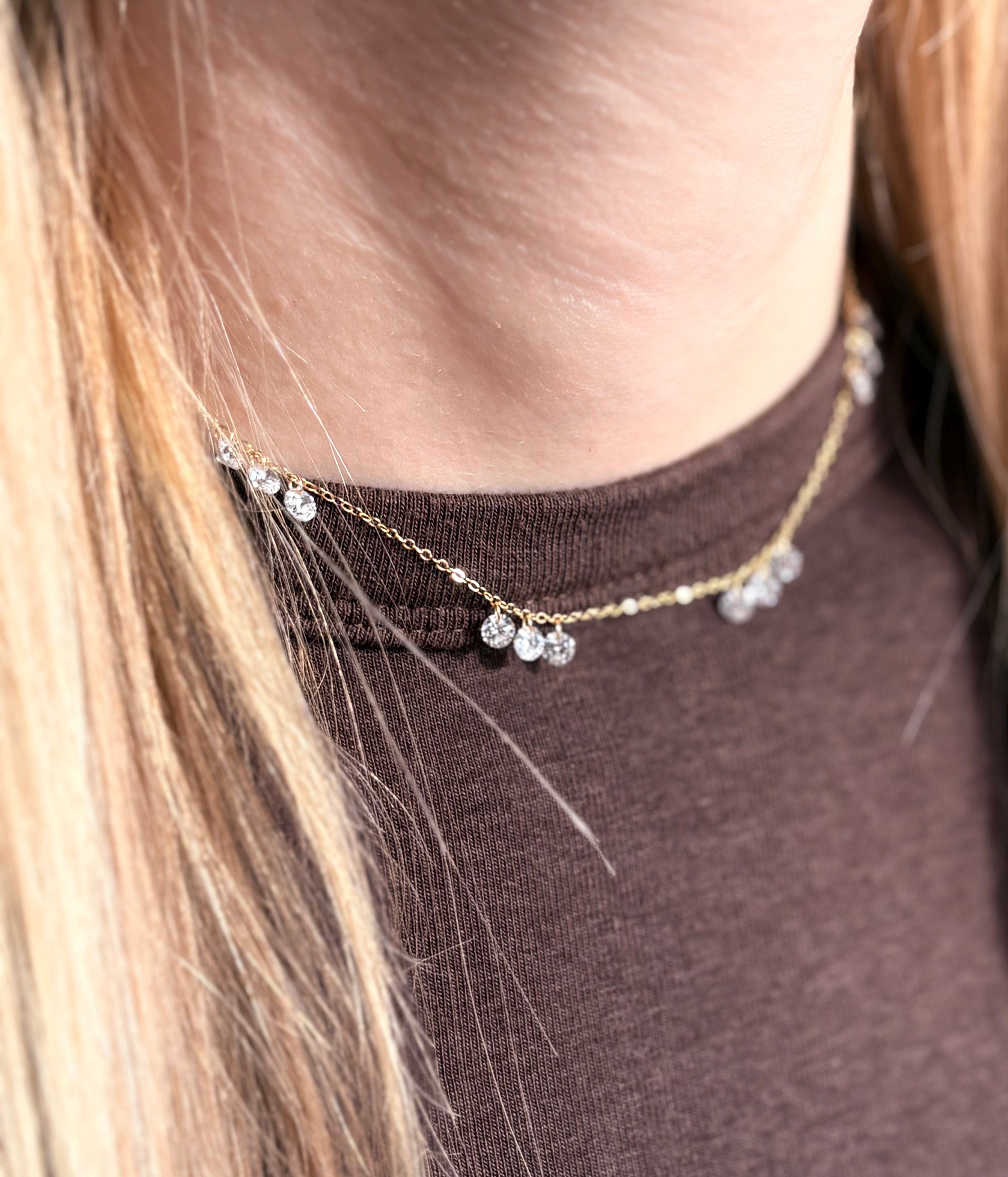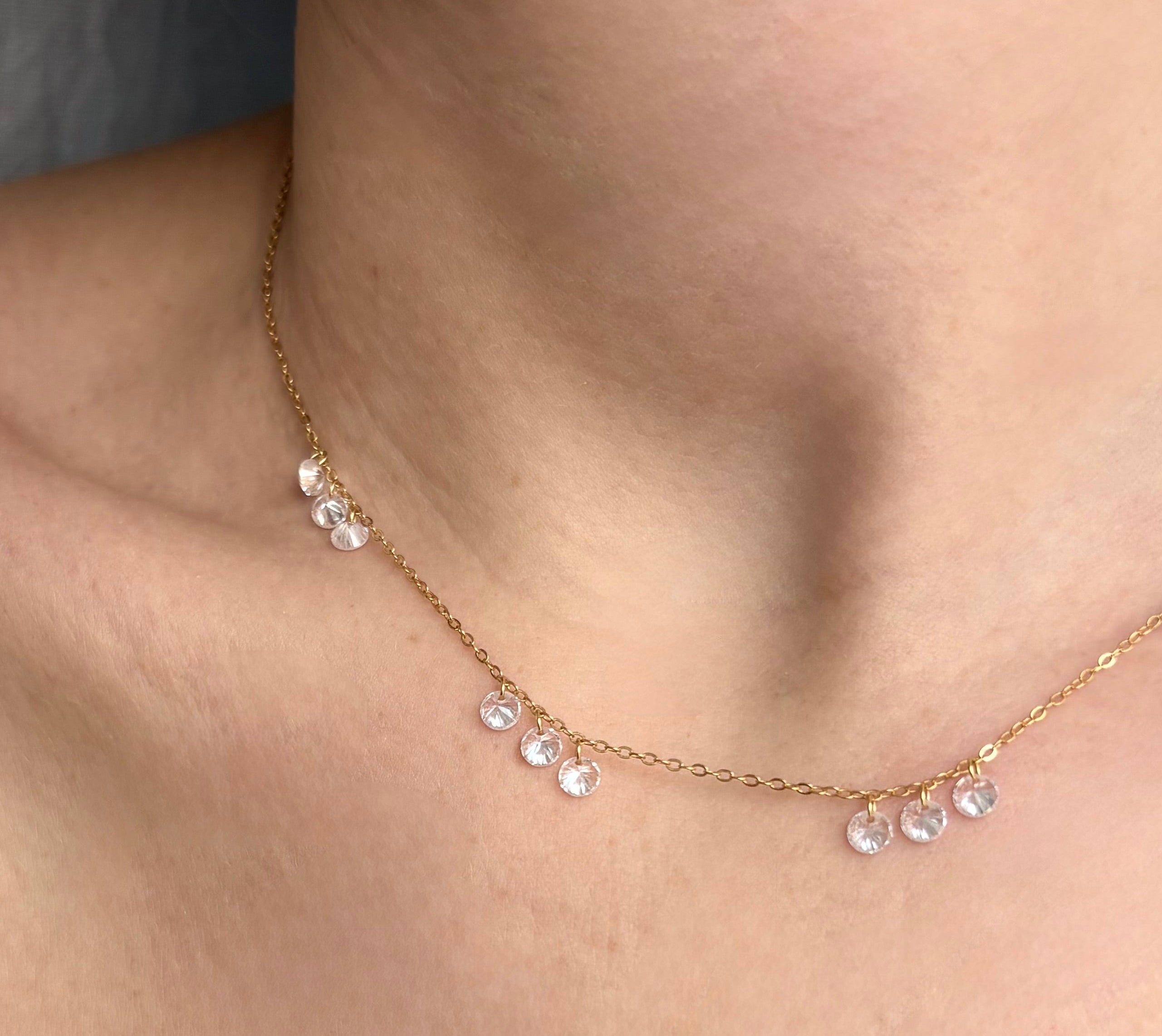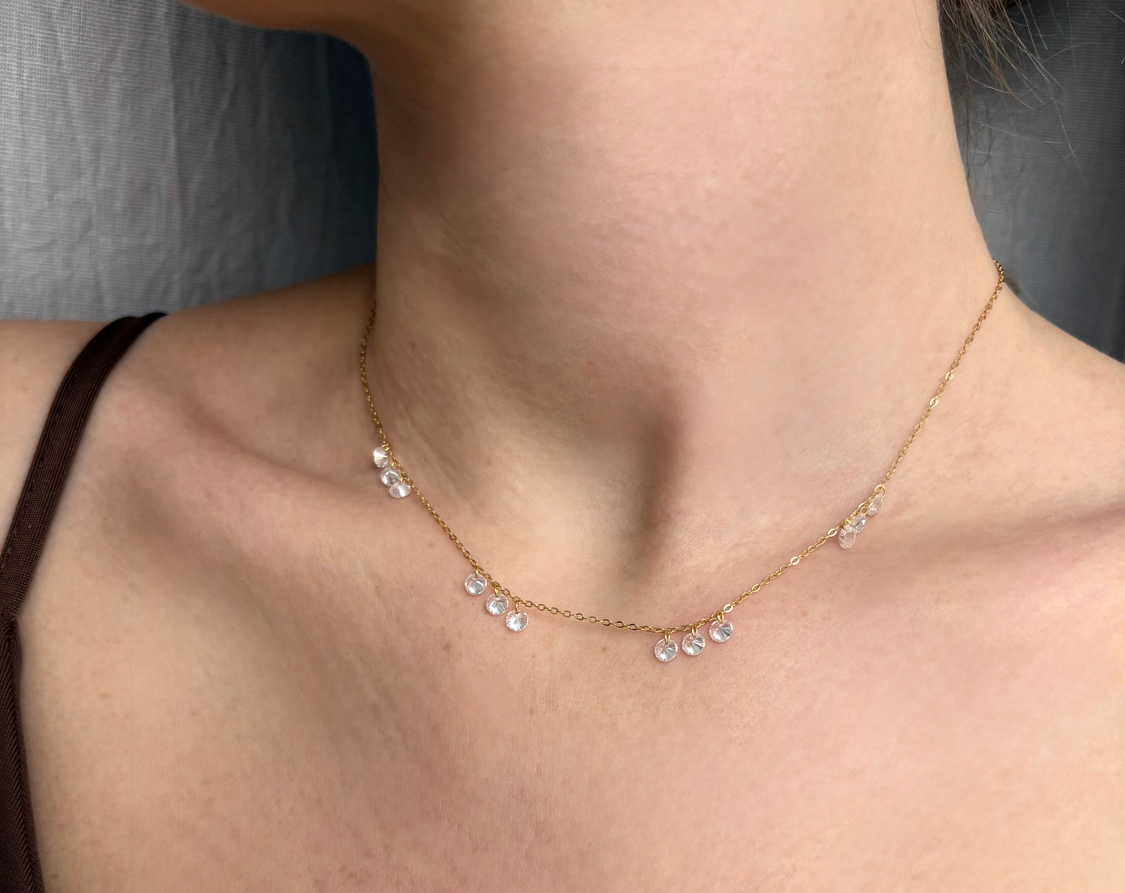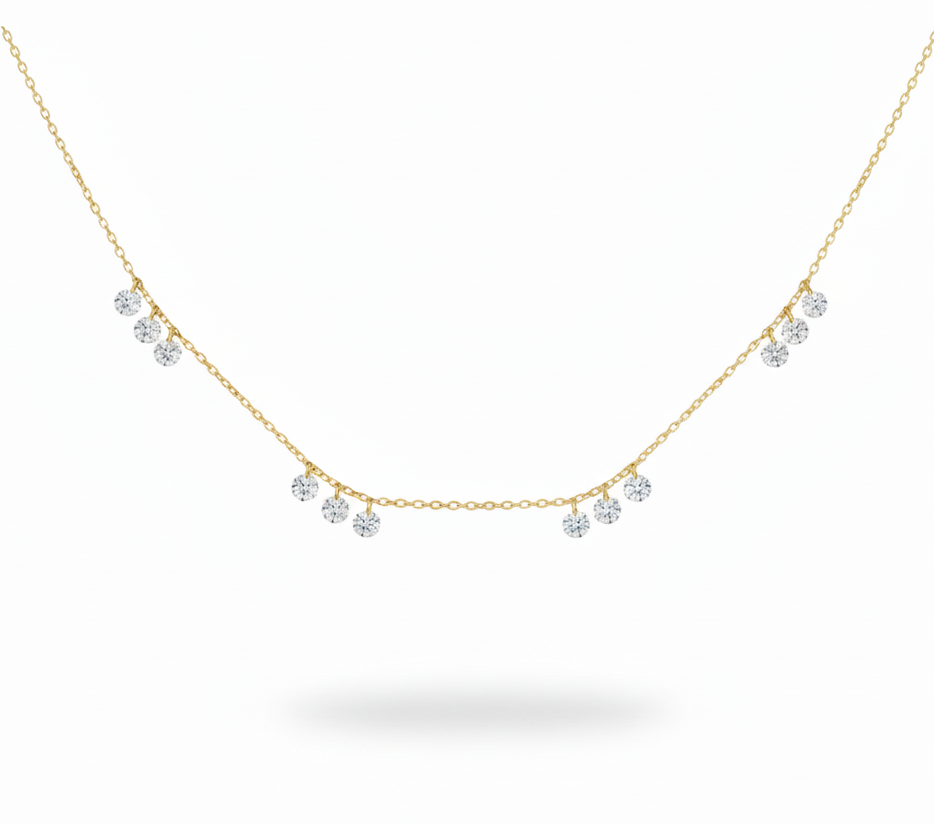 Wie kleine Lichtblicke auf deiner Haut. Unsere Luce Sparkle Kette aus hochwertigem, vergoldetem Sterling Silber trägt sanft schimmernde Anhänger, die bei jeder Bewegung das Licht einfangen. Ein Hauch von Luxus für jeden Tag, der deine natürliche Ausstrahlung unterstreicht.