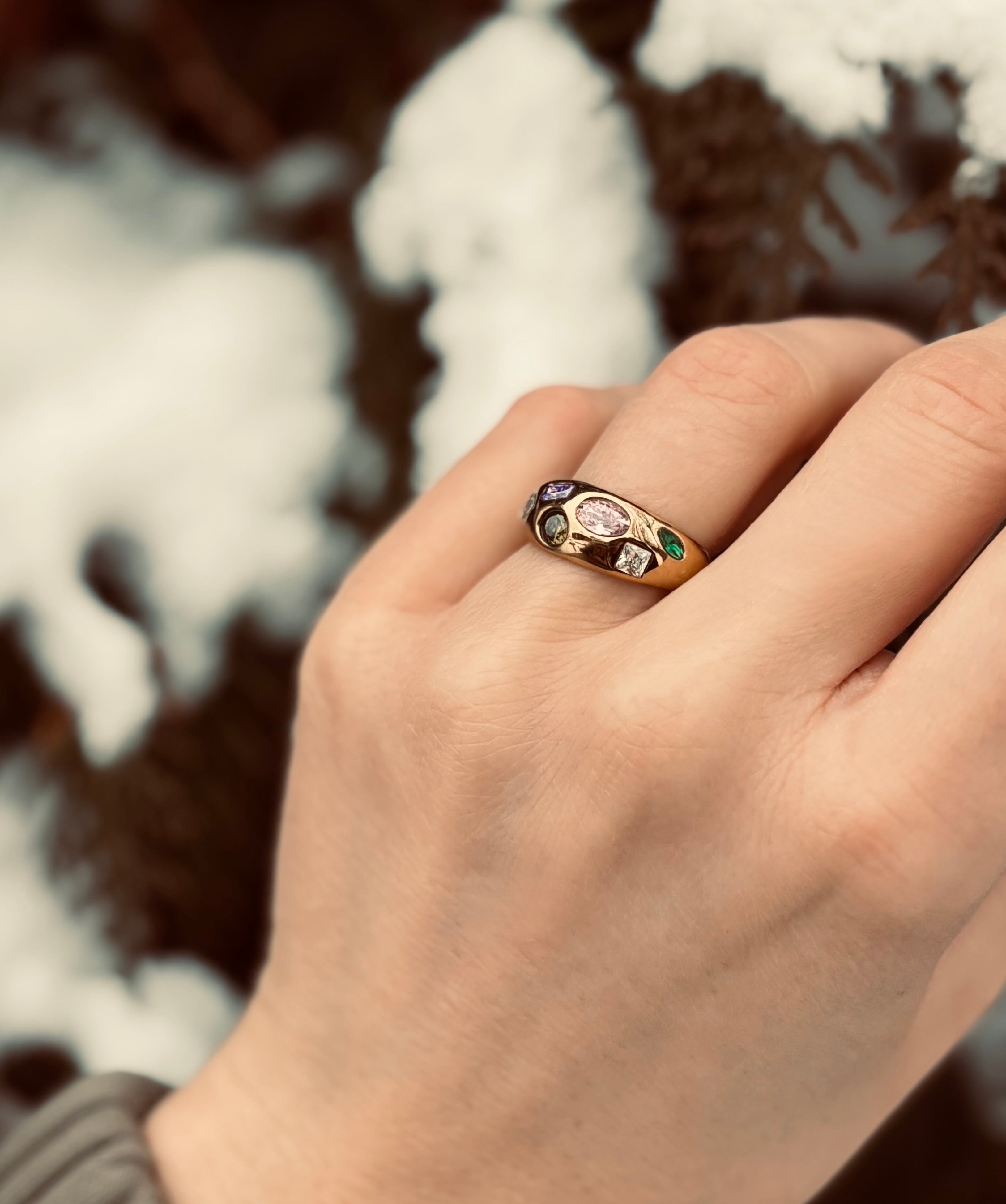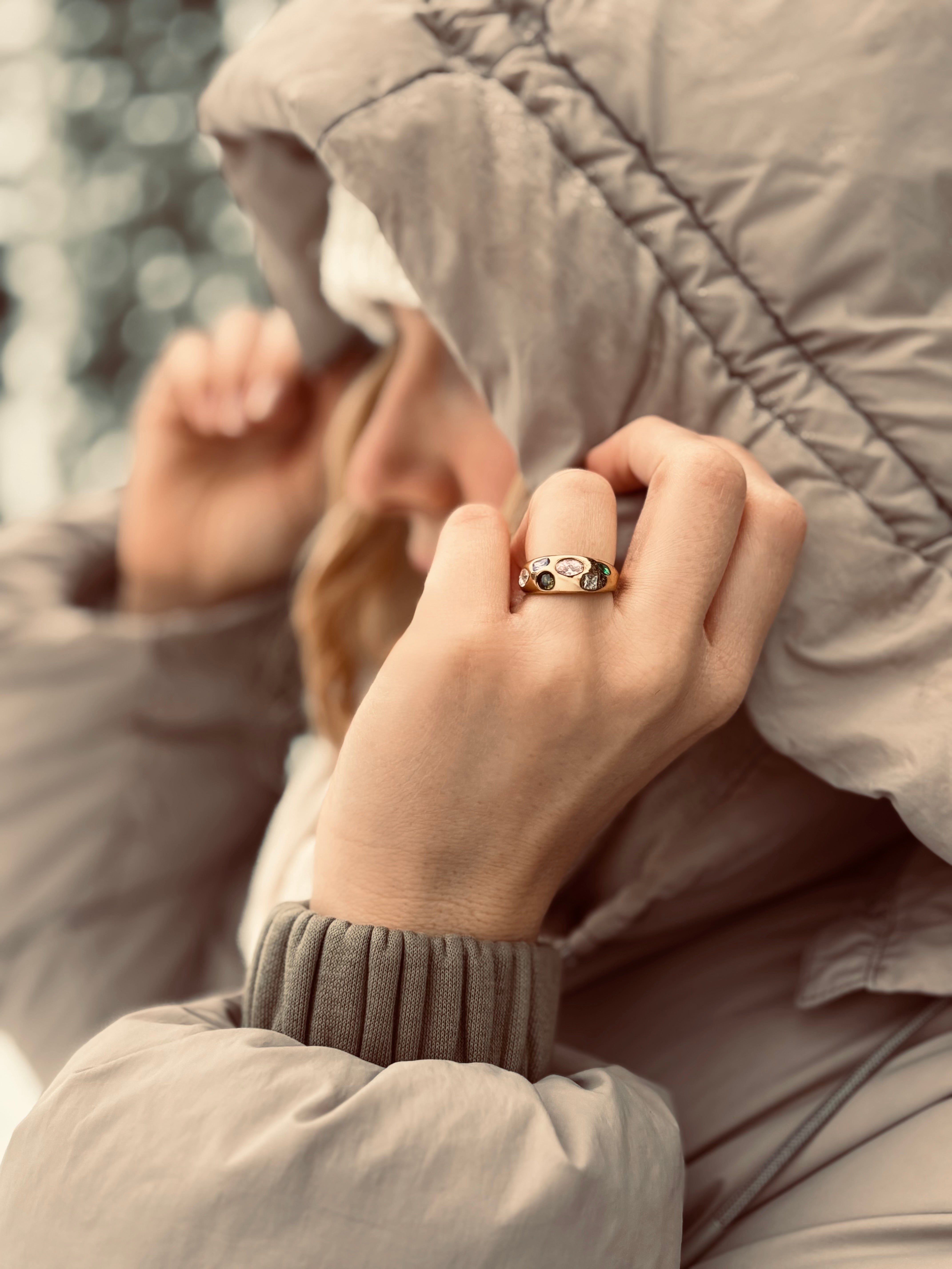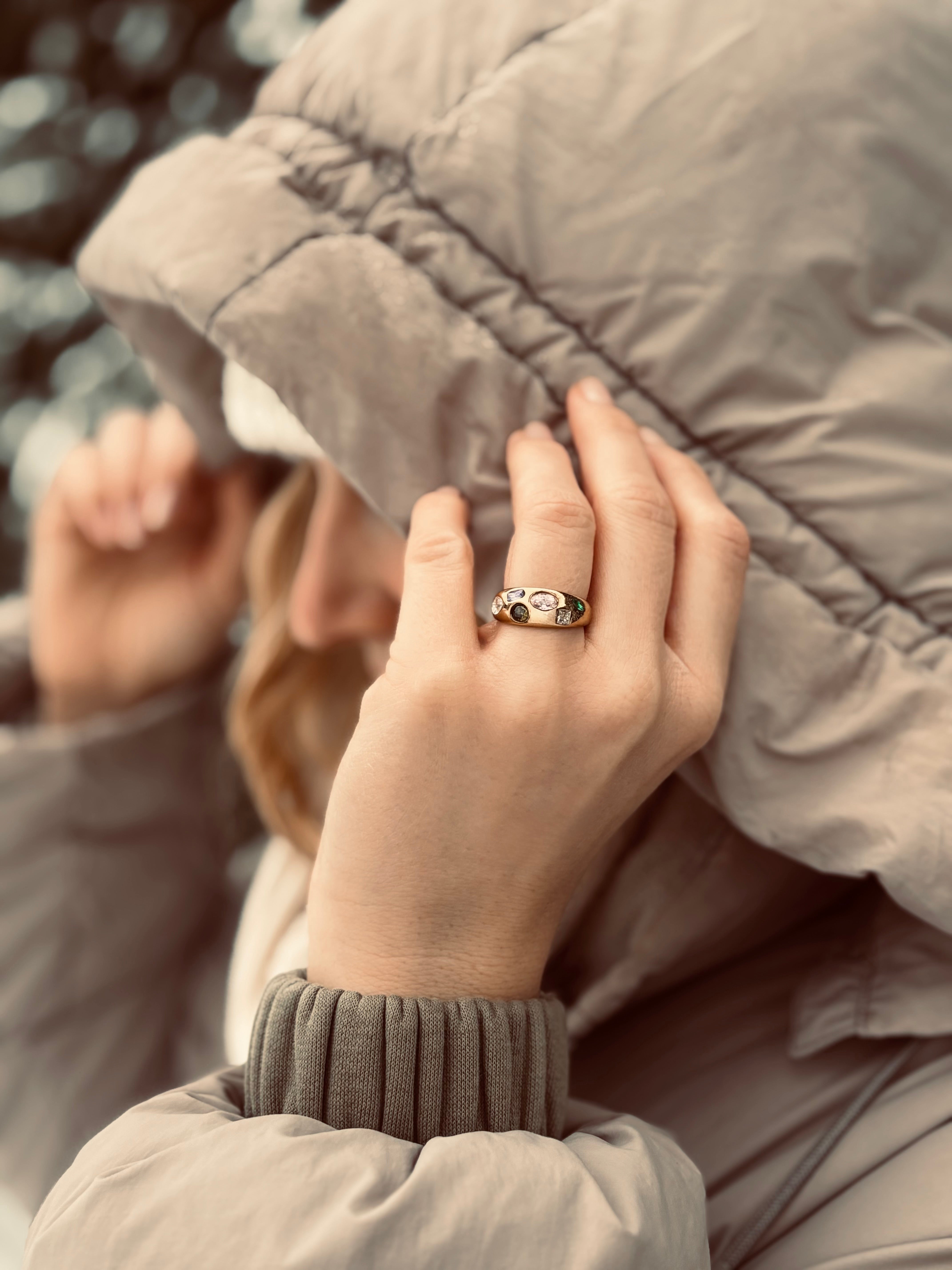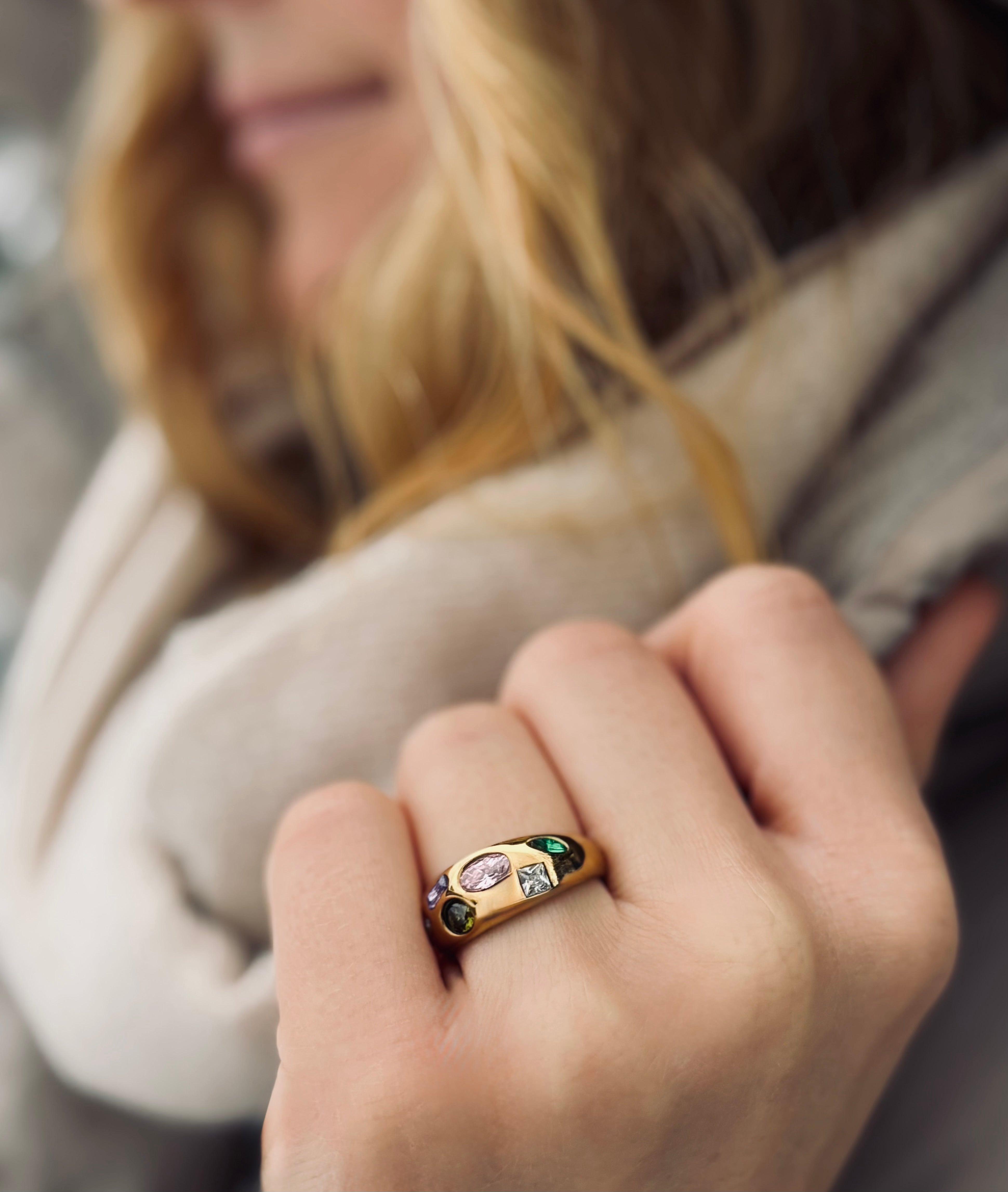 Ein wahres Schmuckstück, das Mut zur Farbe zeigt. Der Tesoro Dome Ring vereint die kostbarsten Steine in einer voluminösen, gewölbten Goldfassung – ein Statement-Piece, das alle Blicke auf sich zieht.