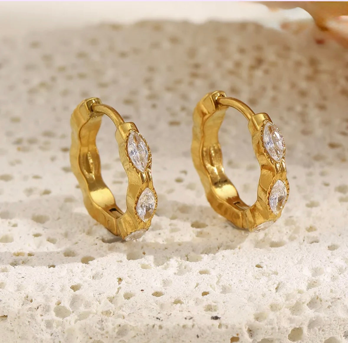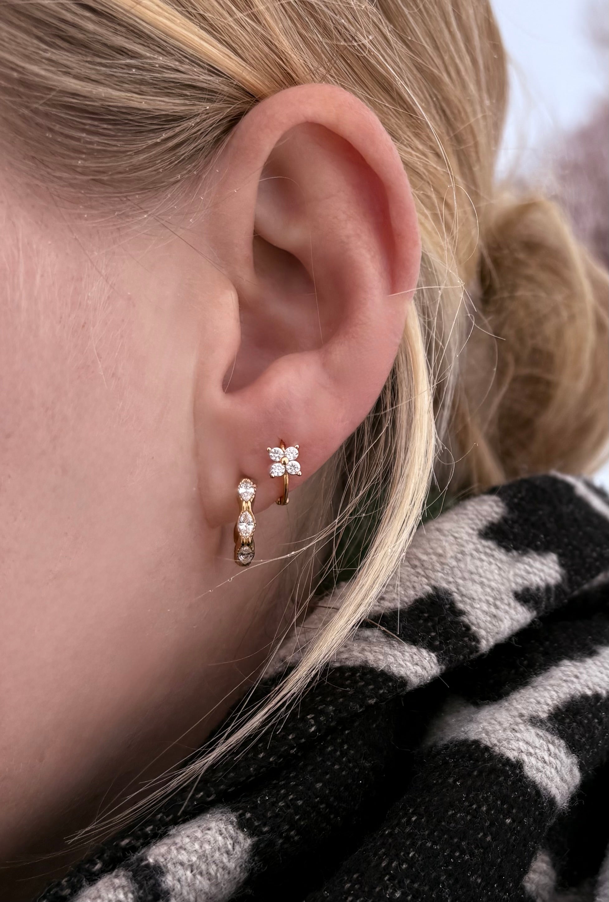 Hol dir das Funkeln der italienischen Riviera direkt nach Hause. Unsere Bella Luce Ohrringe bestechen durch ihr wellenförmiges Design und die präzise gefassten Kristalle im Marquise-Schliff, die das Licht bei jeder Bewegung einfangen.
