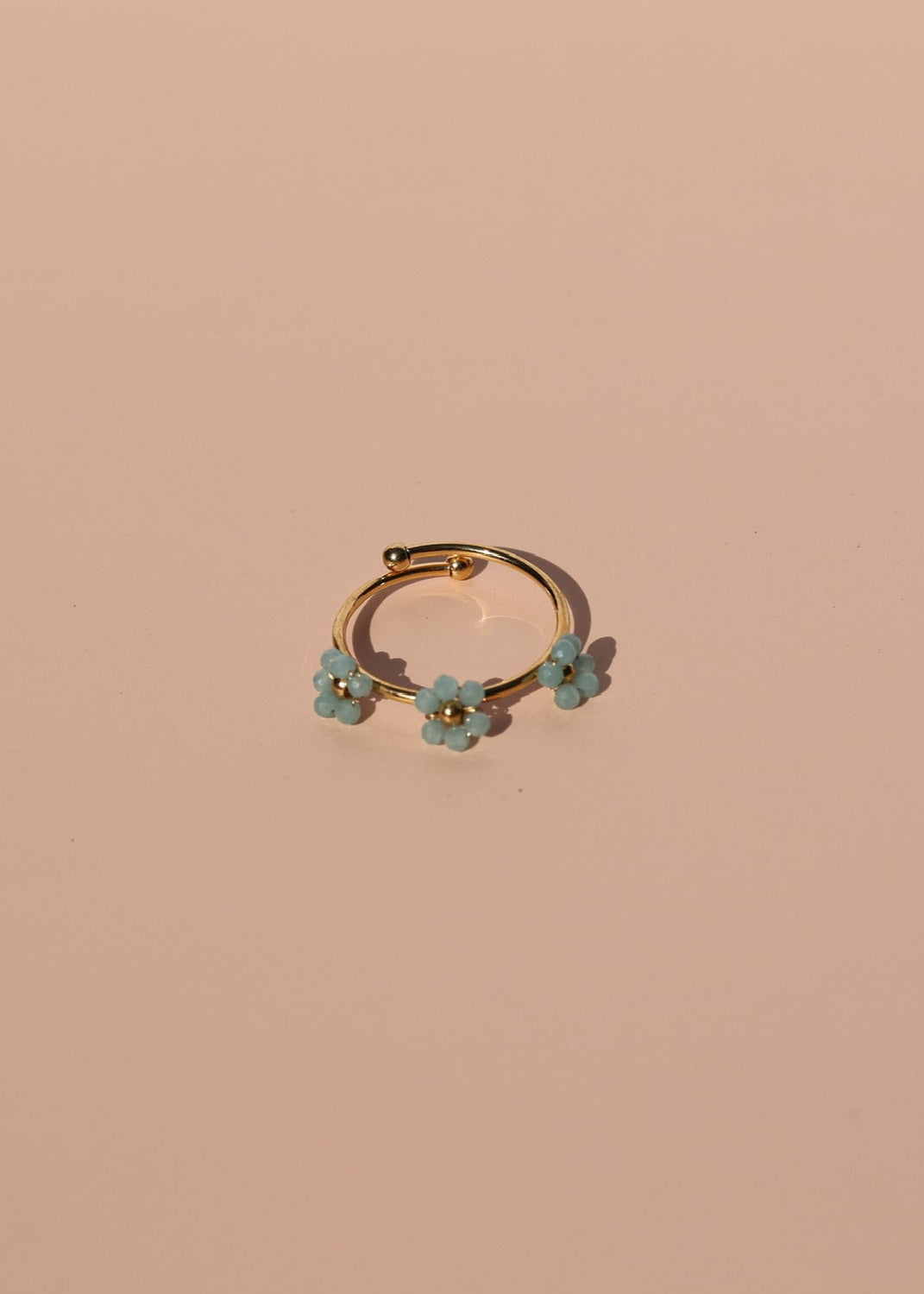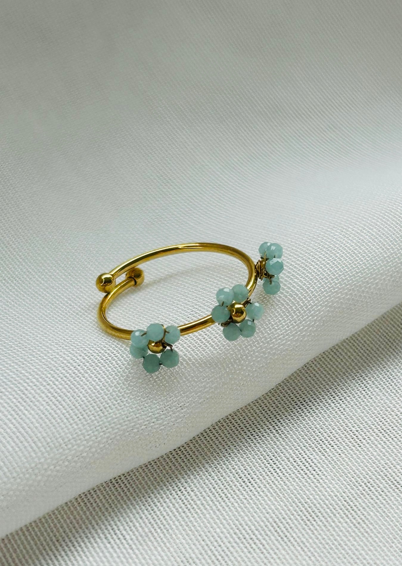 Goldener Ring mit zarten Blüten. Ein Hauch von Frühling, eingefangen in einem zeitlosen, femininen Design. Individuell verstellbar.