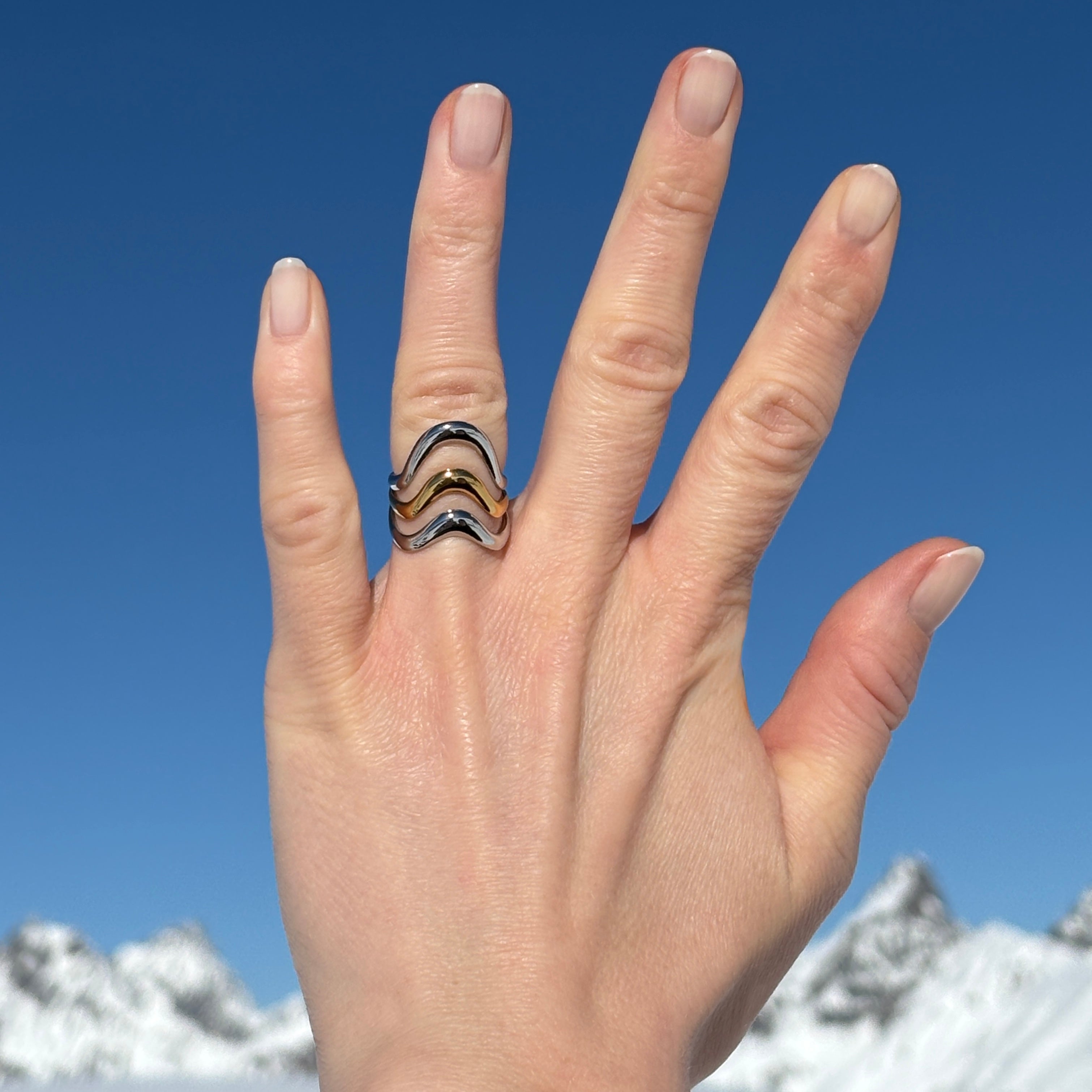 Der Anello Onda Aurea verkörpert die zeitlose Eleganz italienischen Designs. Fließende, organische Linien in edlem Gold- und Silberton umschlingen sich in harmonischer Bewegung und erinnern an sanfte Wellen des Mittelmeers. Die skulpturale Form verleiht dem Ring eine moderne Ausdruckskraft, während die hochglanzpolierte Oberfläche für luxuriöse Raffinesse sorgt.