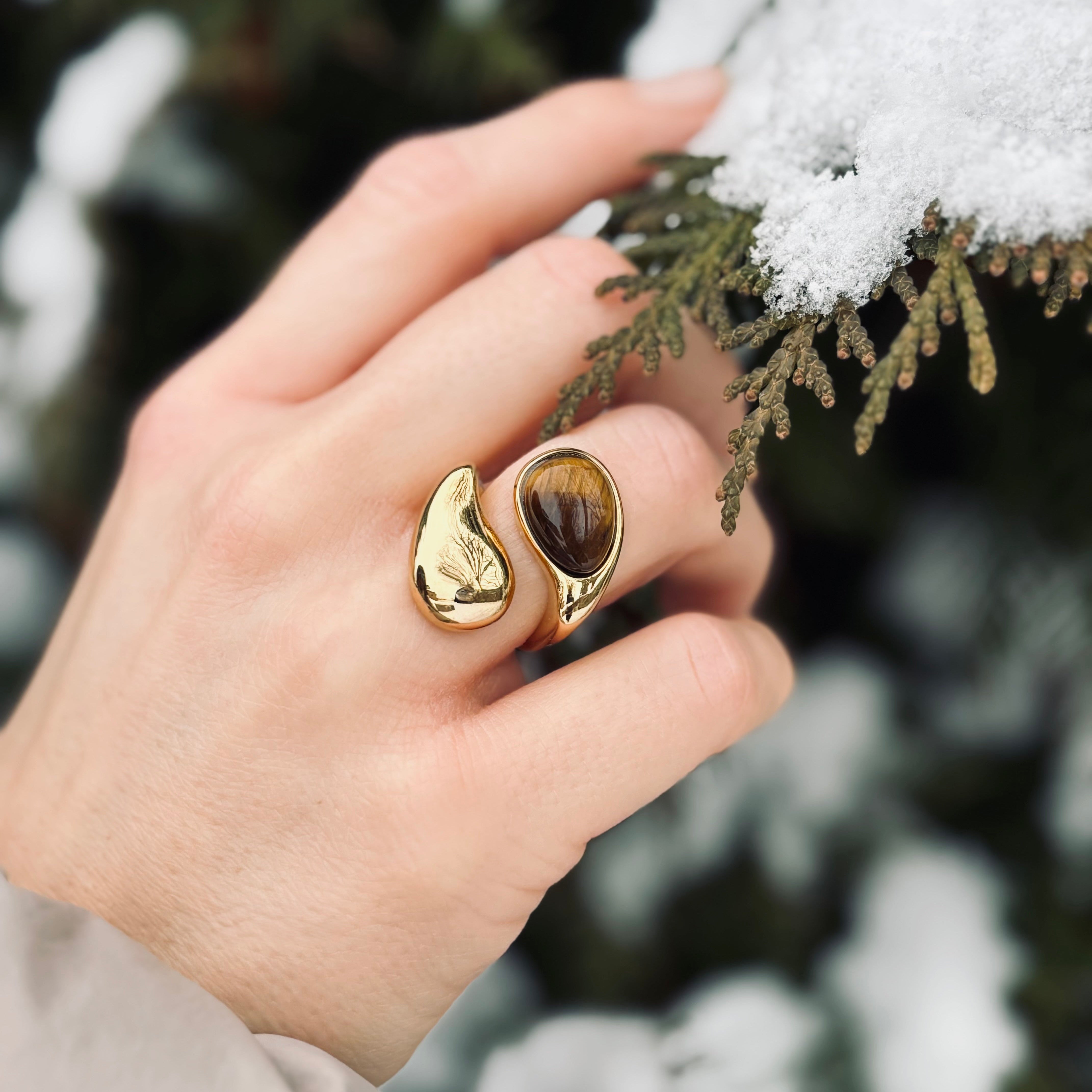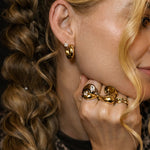 Ein Statement-Stück, das moderne Eleganz neu definiert. Die sanft geschwungene, goldene Form umschließt eine schimmernde Perle in Tropfenform. Perfekt für alle, die das Besondere lieben.