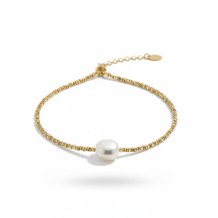Strahlende Süßwasserperle auf goldenem Band. Inspiriert vom mediterranen Glanz der Amalfiküste – lässig, elegant und immer ein Highlight.