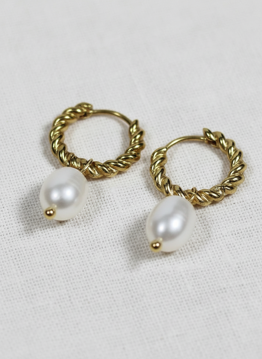 Gewellte Statement-Creolen mit schimmernden Perlen-Details. Vereinen die Dynamik kalifornischer Wellen mit italienischer Raffinesse - perfekt für das Dolce Vita Gefühl.