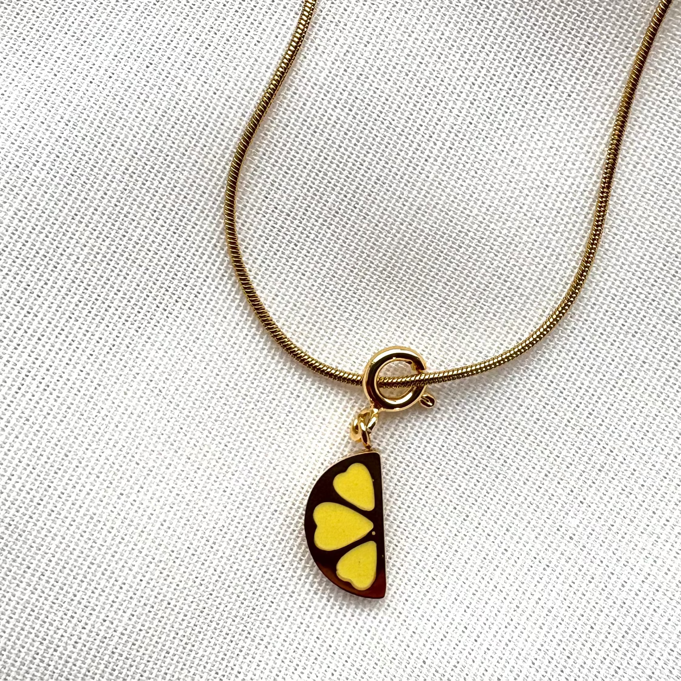 Verspielter Zitrus-Charm mit goldener Fassung. Wie ein Hauch mediterraner Zitronenhaine - erfrischend süß und voller sommerlicher Lebenslust.